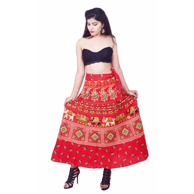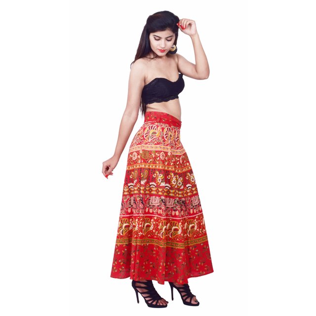 Elevate your wardrobe with this exquisite Red Cotton Long Wrap Skirt, handcrafted from premium Jaipuri printed cotton fabric. Each skirt showcases the timeless artistry of Rajasthan, featuring intricate patterns that celebrate tradition and style.